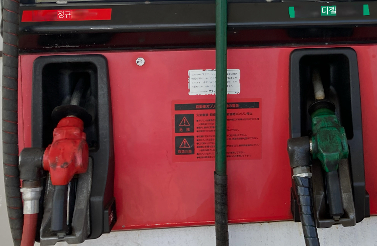 왼쪽 빨강이 레귤러 (휘발유), 오른쪽 초록이 경유다.
