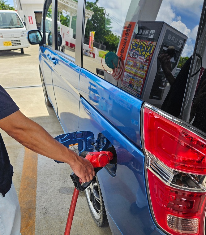 며칠은 스쿠터가 아닌 렌트카를 빌렸다. 업체에서 레귤러 (일반 휘발유)라고 말해주셔서 위의 스쿠터와 같은 방식으로 넣었다. 3일 돌아다니고, 7천엔 정도 넣으니 만땅이 되었다.