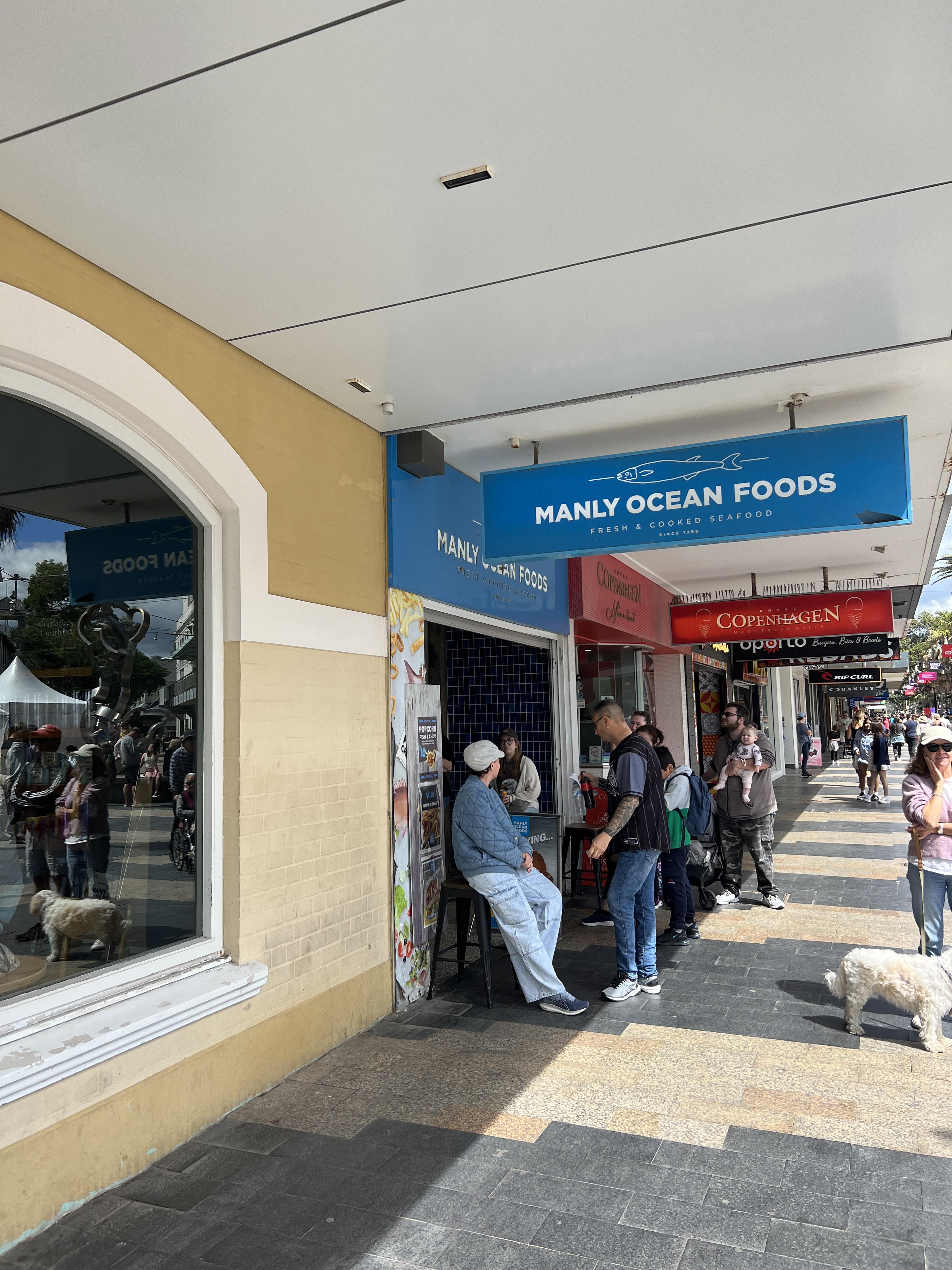 맨리 비치는 아주 관광지스러운 해변이었다. 조용하고 아담하고 그런 해변과는 거리가 멀었다. 백사장의 폭이 넓지 않아서 더 그래보였던 것 같다. 해변 자체가 마음에 들지는 않았다. 그런데 아래 사진처럼 상점들 사이 야자수 아래서 사람들이 무언가를 먹는 모습은 되게 좋았다.
