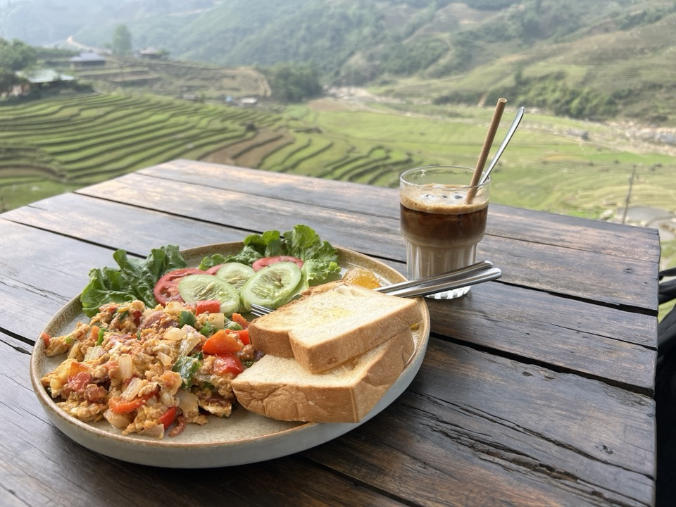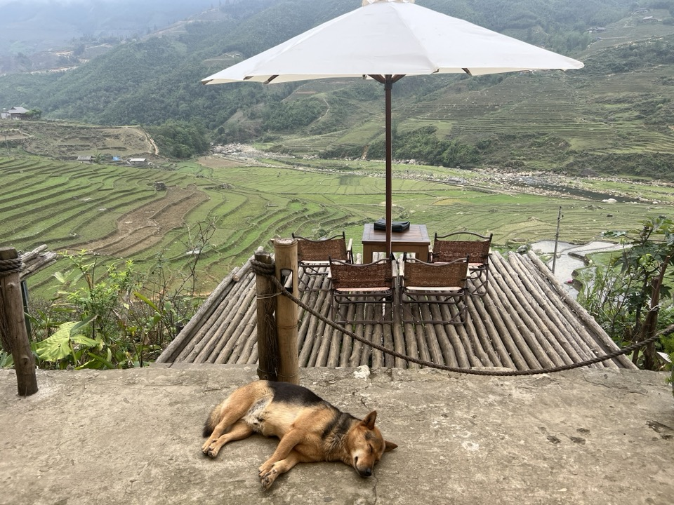 사파를 가는 이유인 아름다운 계단식 논 뷰를 가장 제대로 즐길 수 있는 카페가 이곳이었다. 4일 정도 사파에 머물면서 깨달은 점인데, 계단식 논이 예쁘게 보이려면 일단 카페 바로 앞부터 계단식 논이 있어야 하고, 탁 트여 있어야 한다. 또, 건너편 산에도 너무 멀지 않게 계단식 논이 있어야 한다. 생각보다 이런 카페가 많지 않은데 세일링 사파가 그랬다.