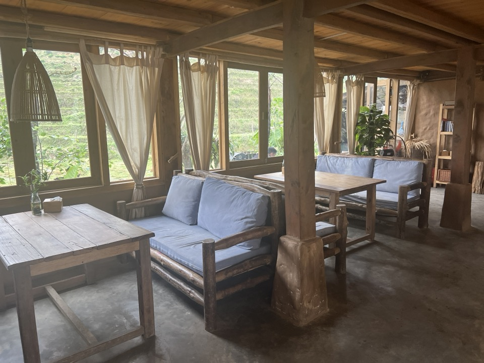 외부 공간만 있는 것은 아니다. 아래와 같이 내부에도 자리가 있으며 개방형 공간이라서 에어컨은 없는 것 같다. 화장실도 아주 깨끗했다. 들어온 곳 말고 계단식 논 쪽으로도 입구가 있는데, 이쪽을 이용하면 계단식 논 쪽으로 내려가 트레킹을 해볼 수도 있다.